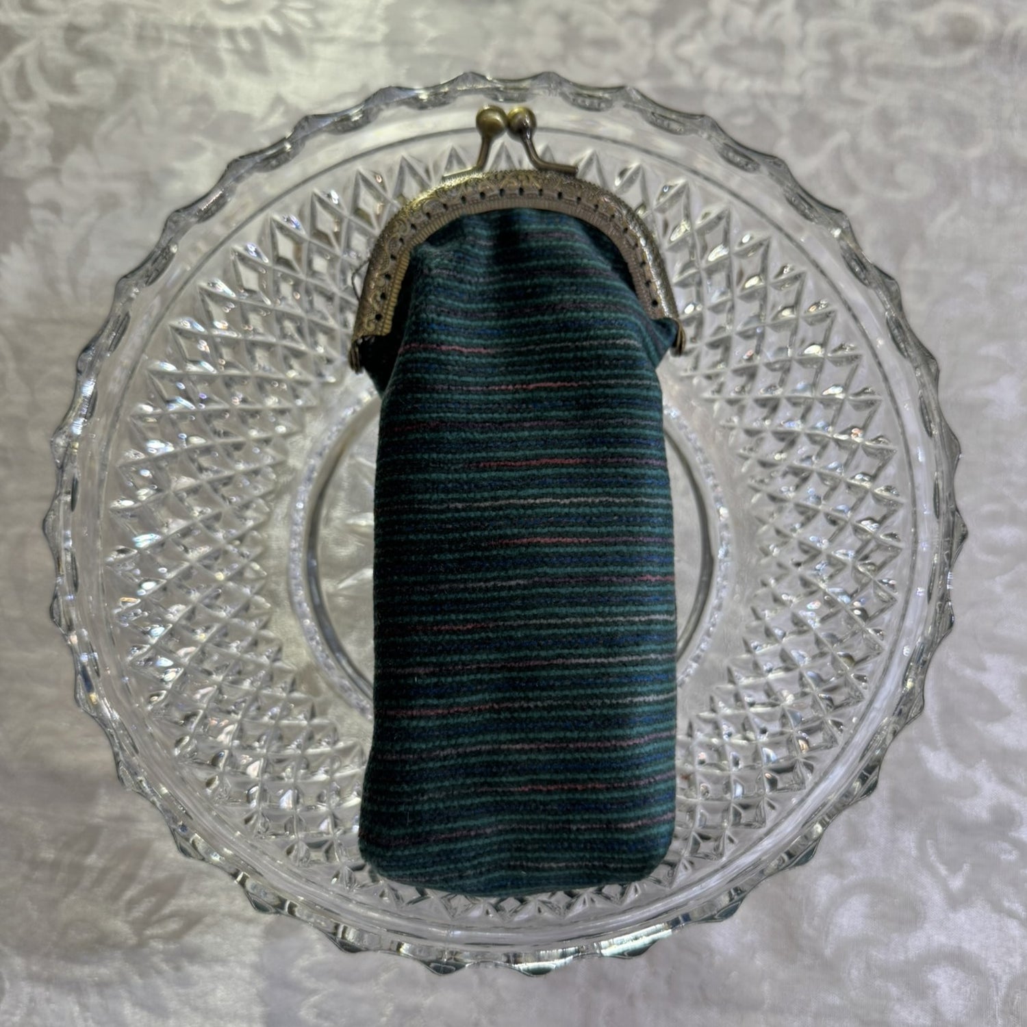 Our lovely little eyeglass pouches will help you create a spectacle of style! Each one is handmade with vintage and secondhand materials, fully lined with a layer of batting enclosed to keep the contents safe. Metal kiss clasp frames are meticulously attached by hand with a special heavy duty abrasion-resistant thread. These are our best sellers! Customers have told us that they use them for storing all sorts of things- art supplies, dice, you name it!