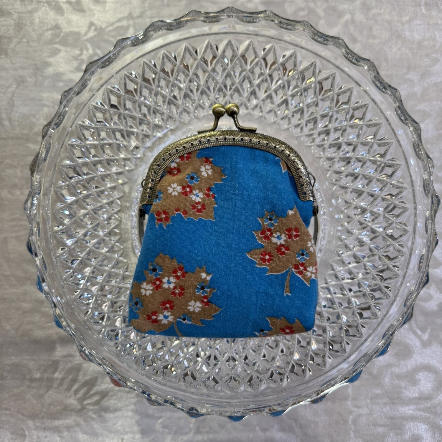 Our lovely little wallet pouches will help you keep your things together. Each one is handmade with vintage and secondhand materials, fully lined with a layer of batting enclosed to keep the contents safe. Metal kiss clasp frames are meticulously attached by hand with a special heavy duty abrasion-resistant thread. These are also a customer favorite!