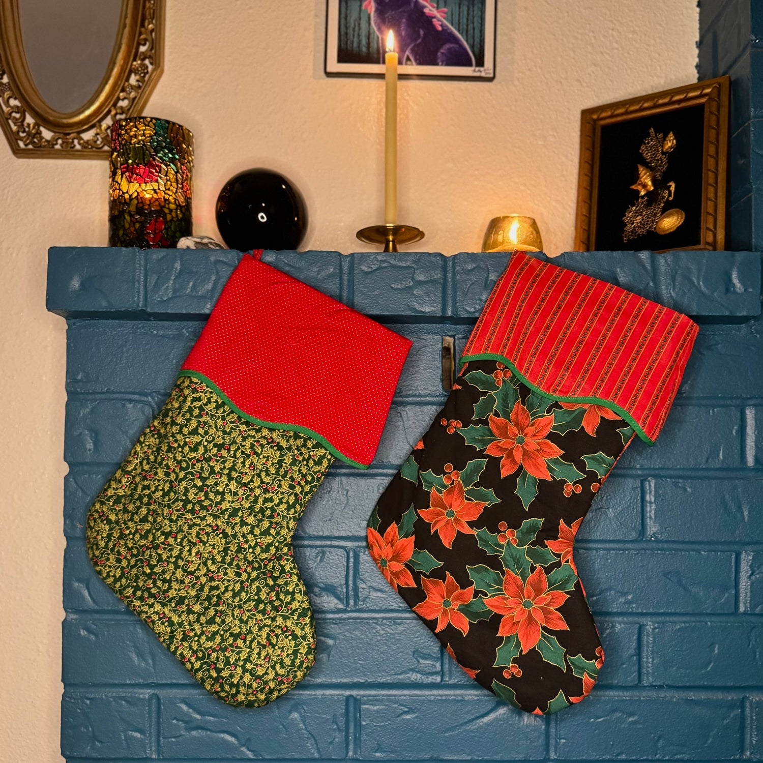 Our holiday stockings are made with vintage and secondhand fabrics, perfect for filling to the brim with your favorite goodies.